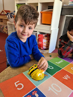 Gisteren leerden de kinderen de eerste beginselen van het programmeren met de bee bot.
